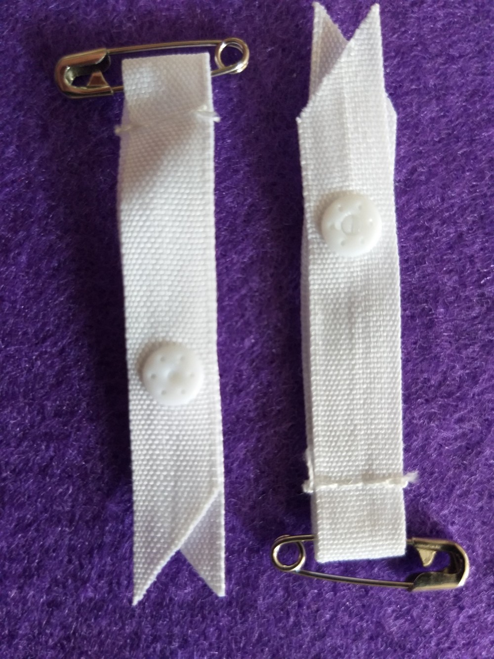 or have a safety pin to attach to the inside of the fabric, often using a press